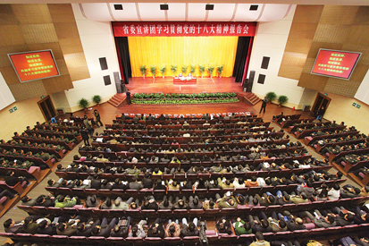 就深入學(xué)習(xí)宣傳貫徹黨的十八大精神,周春雨強調(diào),要在深刻理解、把握精髓上下功夫。各級各部門和廣大干部群眾要按照中央提出的“七個深刻領(lǐng)會”的要求,堅持不懈地學(xué)深學(xué)透,把握實質(zhì),融會貫通,切實把思想和行動統(tǒng)一到十八大精神上來。要在廣泛宣傳、凝聚力量上下功夫。要以領(lǐng)導(dǎo)干部為重點,精心安排好各級干部的培訓(xùn)、輪訓(xùn),真正做到以十八大精神武裝頭腦、指導(dǎo)實踐、推動工作。各地區(qū)各部門的主要領(lǐng)導(dǎo)既要身體力行,帶頭學(xué)習(xí),更要帶頭宣傳,帶頭宣講,確保集中宣講活動全覆蓋,使學(xué)習(xí)教育覆蓋到各個社會團體,各級宣傳輿論部門要精心策劃集中報道,積極營造學(xué)習(xí)貫徹十八大精神的濃厚氛圍。