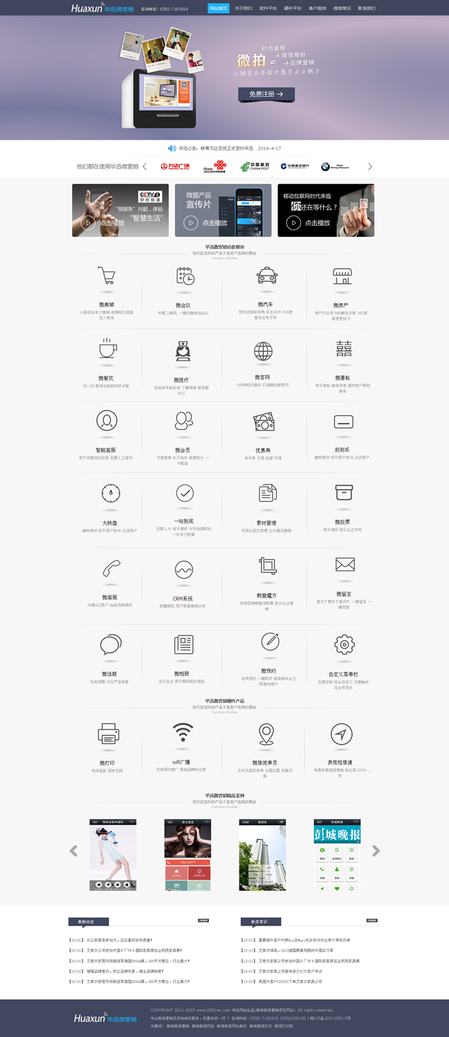 華迅網(wǎng)絡(luò)是打造一個(gè)專門針對(duì)微信公眾賬號(hào)提供營(yíng)銷推廣服務(wù)的第三方平臺(tái)。主要功能是針對(duì)微信商家公眾號(hào)提供與眾不同的、有針對(duì)性的營(yíng)銷推廣服務(wù)。通過(guò)華訊微網(wǎng)站平臺(tái),用戶可以輕松管理自己的微信各類信息,對(duì)微信公眾賬號(hào)進(jìn)行維護(hù)、開(kāi)展智能機(jī)器人、在線發(fā)優(yōu)惠劵、抽獎(jiǎng)、刮獎(jiǎng)、派發(fā)會(huì)員卡、打造微官網(wǎng)、開(kāi)啟微團(tuán)購(gòu)等多種活動(dòng),對(duì)微信營(yíng)銷實(shí)現(xiàn)有效監(jiān)控,極大擴(kuò)展?jié)撛诳蛻羧汉蛯?shí)現(xiàn)企業(yè)的運(yùn)營(yíng)目標(biāo)。華迅微網(wǎng)站平臺(tái)很好的彌補(bǔ)了微信公眾平臺(tái)本身功能不足、針對(duì)性不強(qiáng)、交互不便利的問(wèn)題,為商家公眾賬號(hào)提供更為貼心的、且是核心需求的功能和服務(wù)。在線優(yōu)惠劵、轉(zhuǎn)盤抽獎(jiǎng)、微信會(huì)員卡等推廣服務(wù)更是讓微信成為商家推廣的利器。智能客服的可調(diào)教功能讓用戶真正從微信繁瑣的日?头ぷ髦薪饷摮鰜(lái),真正成為商家便利的新?tīng)I(yíng)銷渠道。