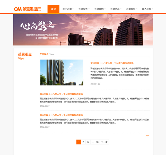 金芒果基于對中國房地產(chǎn)的執(zhí)著追求,憑借對市場營銷的激情創(chuàng)新,以完全經(jīng)過市場檢驗的專家團(tuán)隊和對市場的敏銳天賦,大膽構(gòu)思、執(zhí)著實踐、激情專注、科學(xué)分析,贏得了業(yè)主的廣泛認(rèn)同和支持,并以優(yōu)異業(yè)績和服務(wù)質(zhì)量,被客戶譽為具實效、富激情、科學(xué)嚴(yán)謹(jǐn)?shù)膶I(yè)房地產(chǎn)服務(wù)商。